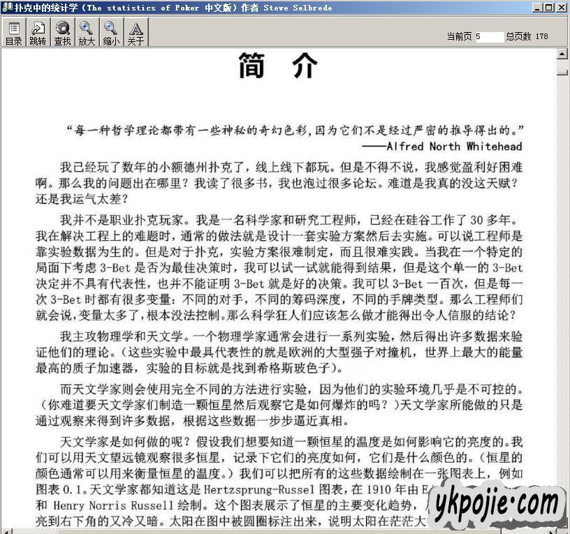 扑克中的统计学(The statistics of Poker 中文版)作者 Steve Selbrede 178页