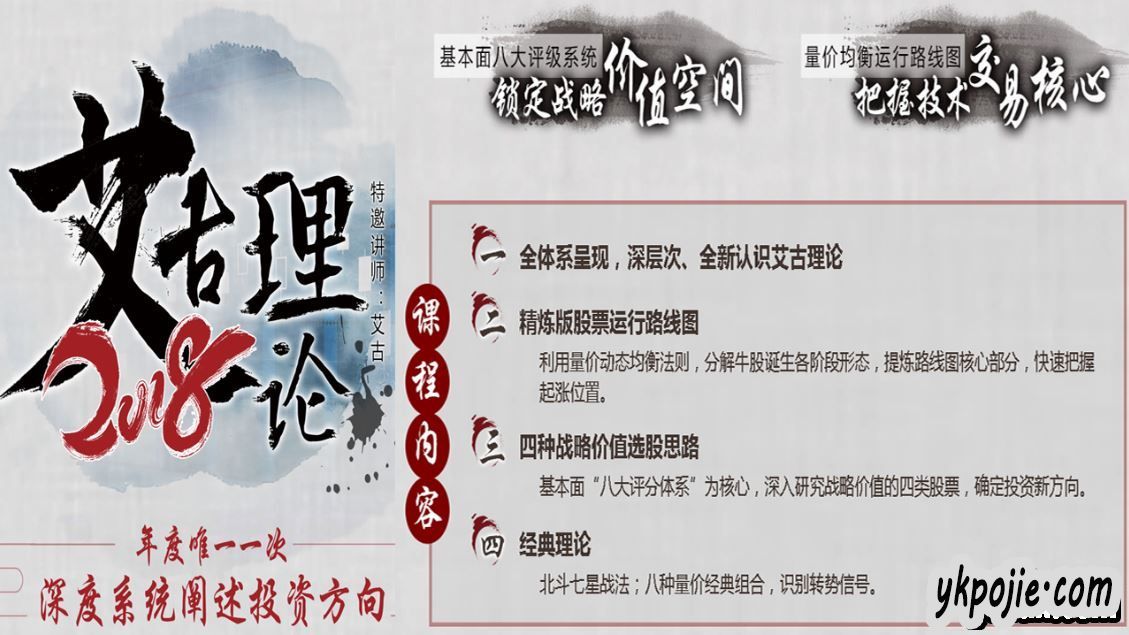 十年唯一精华版,2018艾古理论最后一次培训。集合前期所有精华,十年积累,厚积薄发,全面铺开,深度系统阐述投资方向。
