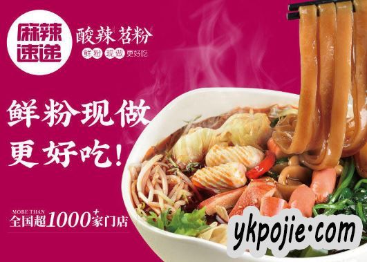 麻辣速递酸辣苕粉,快餐小吃加盟品牌,全国超1000家门店,尽显品牌实力,数千万食客,口味有保证,选择麻辣速递你将得到: