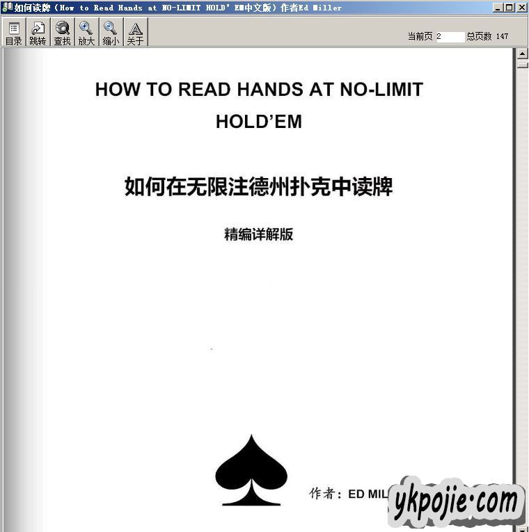 如何读牌(How to Read Hands at NO-LIMIT HOLD’EM中文版)作者Ed Miller 147页